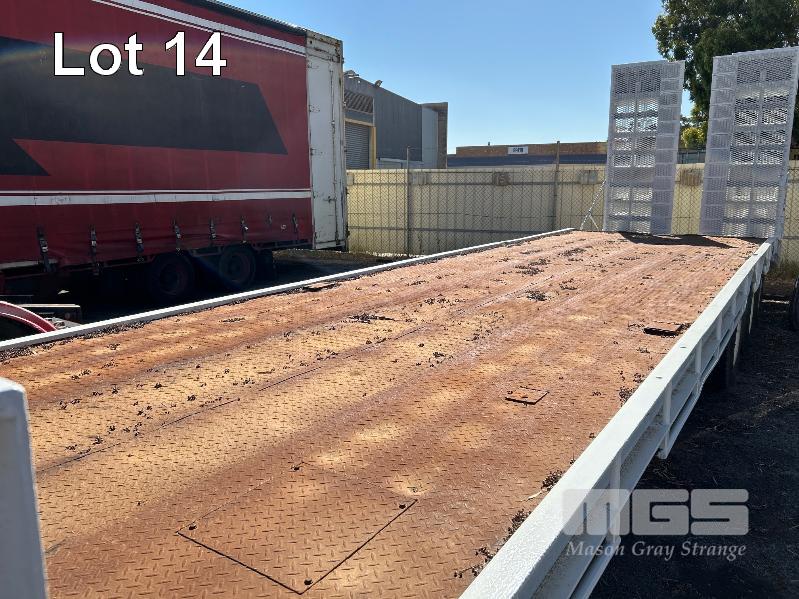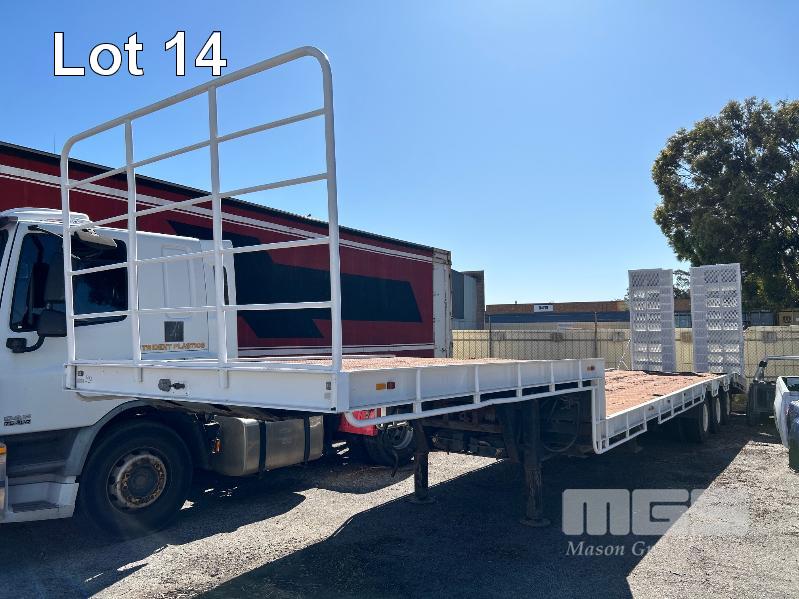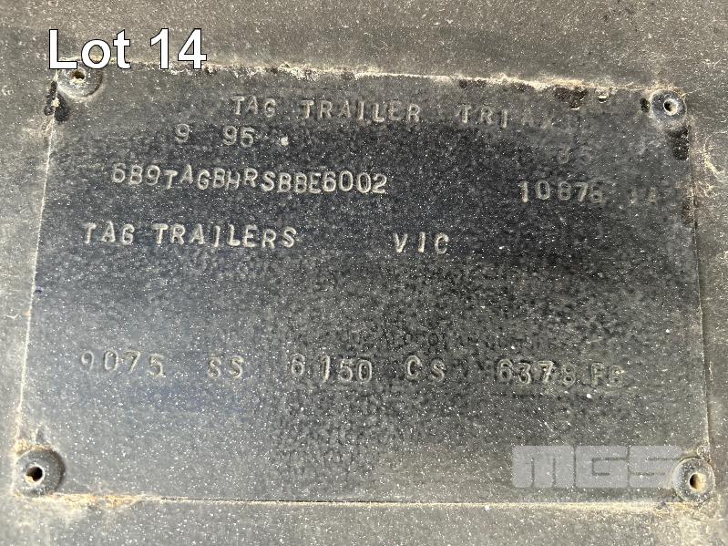 1995 TAG TRAILERS 44' (13.7m) DROP DECK LOW LOADER TRIAXLE SEMI TRAILER REG: TJU 012 VIN / CHASSIS: 6B9TAGBHRSBBE6002 SPRING SUSPENSION, 8.25R15TR, DRUM BRAKES, BEAVER TAIL REAR WITH HYDRAULIC RAMPS HYDRAULIC WINCH MOUNTED FRONT OF MAIN DECK
