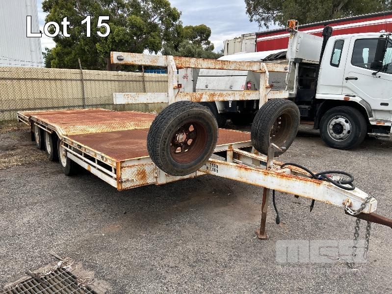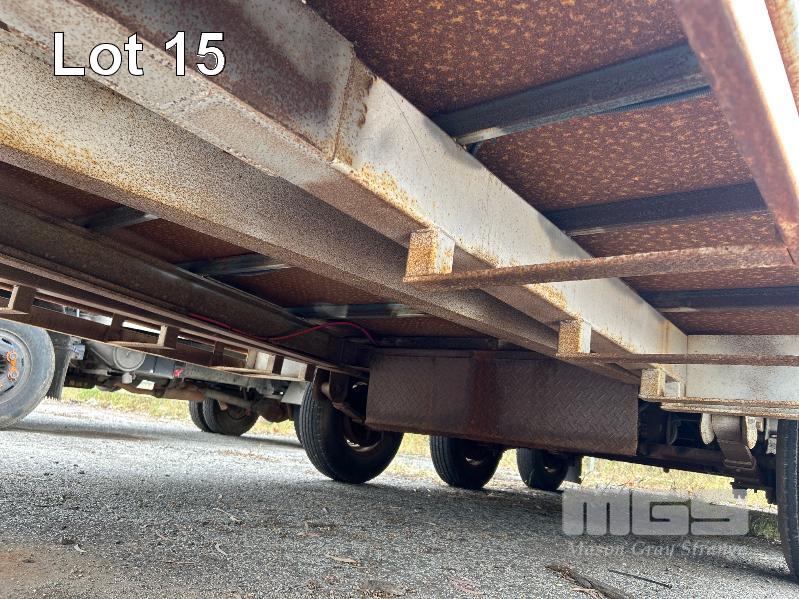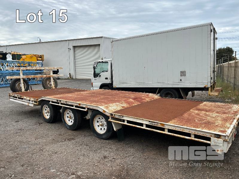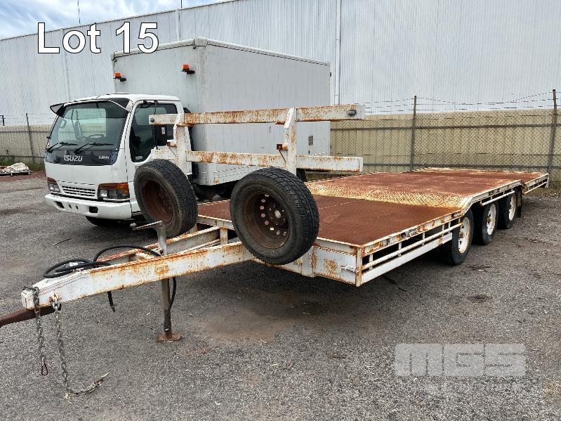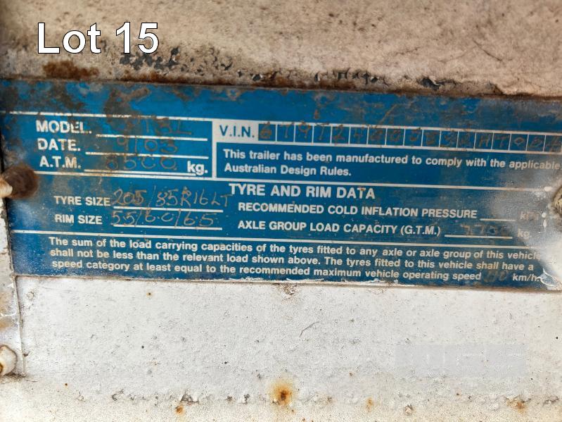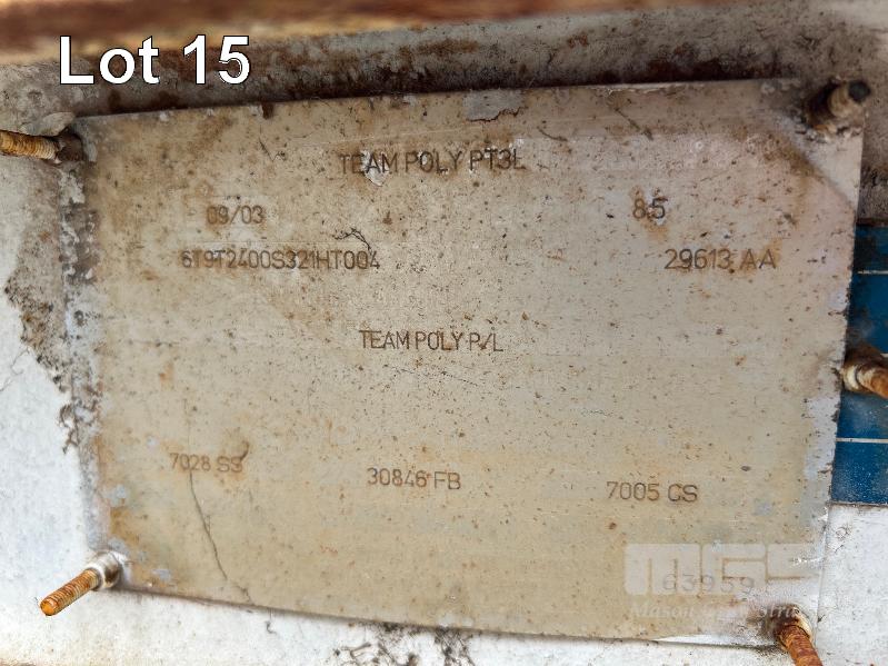 2003 TEAM POLY 15.4' FLAT TOP TRAILER TRIAXLE (4.7 x 2.5m) MODEL: PT3L REG: YFE 536 VIN / CHASSIS: 6T9T2400S321HT004 SPRING SUSPENSION, 205/85R16, AIR BRAKES/DRUM, RING FEEDER, UL: 2,420kg GTM: 7,700kg ATM: 8,500kg 2 x SPARE WHEELS, FRONT GATE
