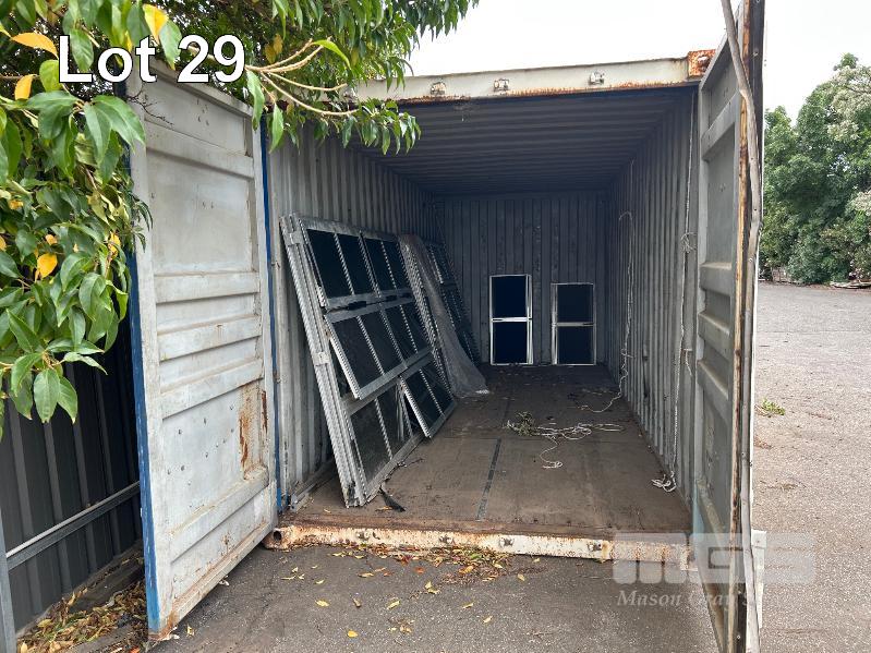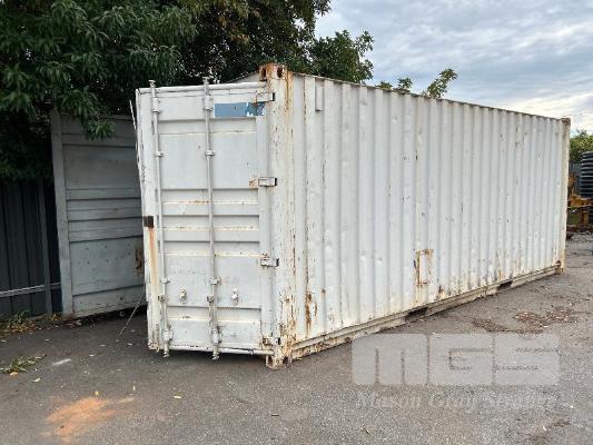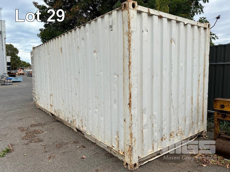 20' SHIPPING CONTAINER WHITE, FORK POCKETS, TIMBER FLOOR, WATERTIGHT NO LEAKS SOME RUST NOT INCLUDING CONTENTS