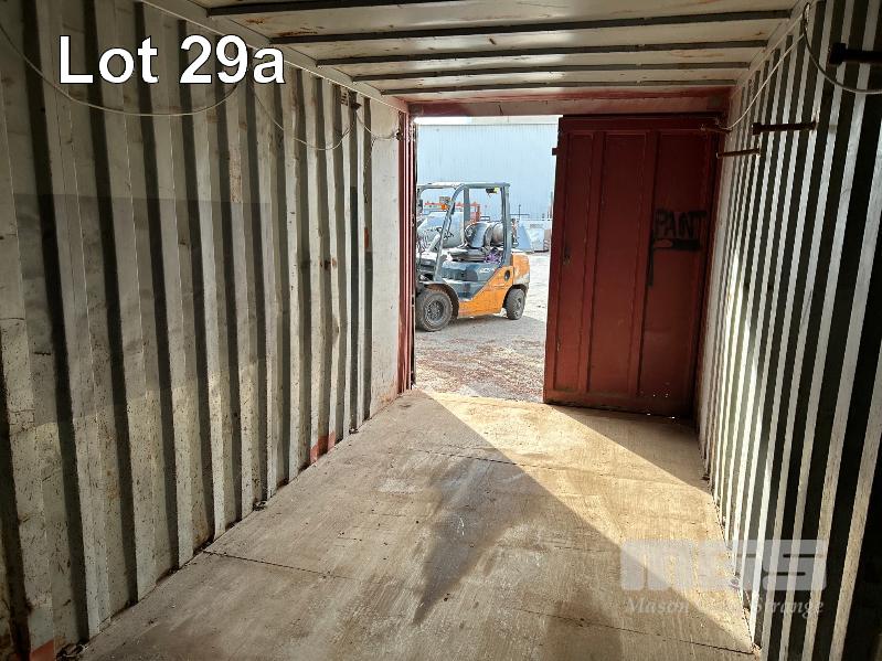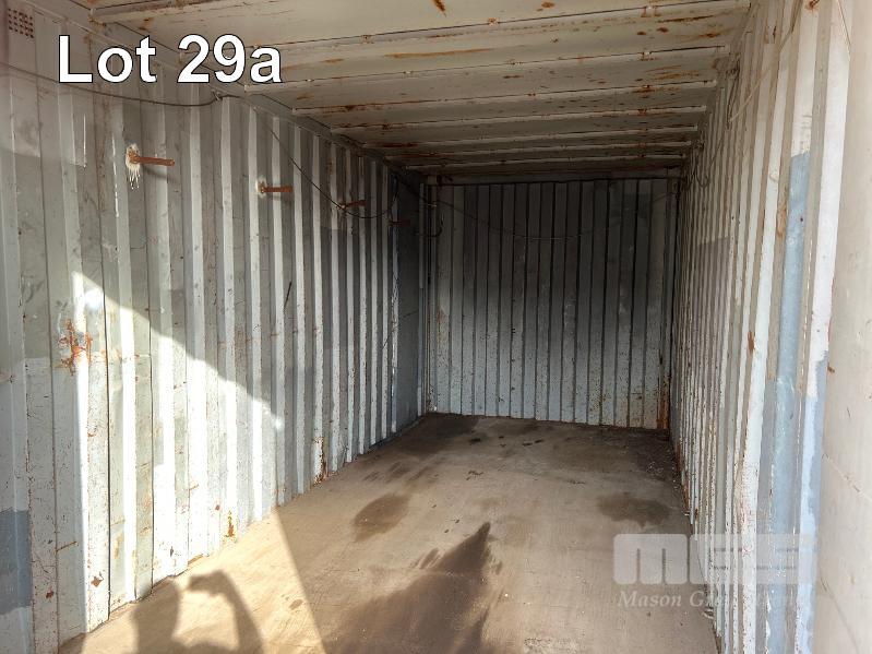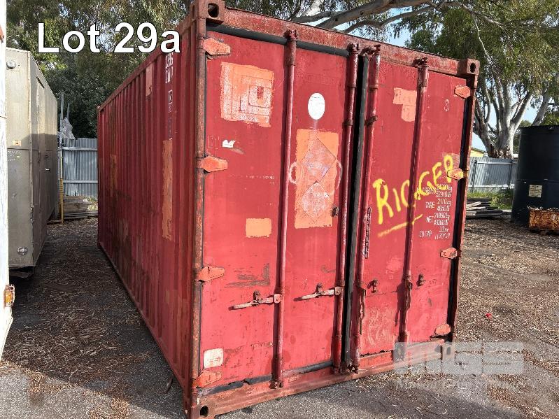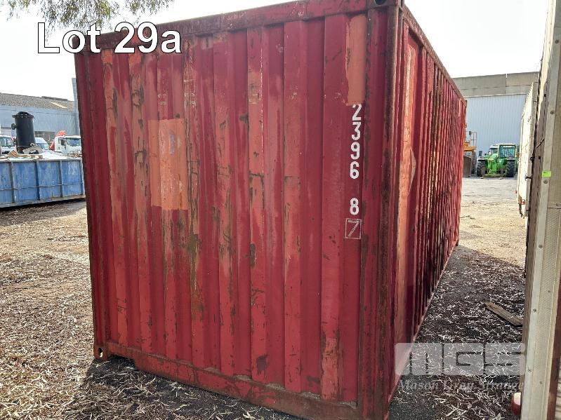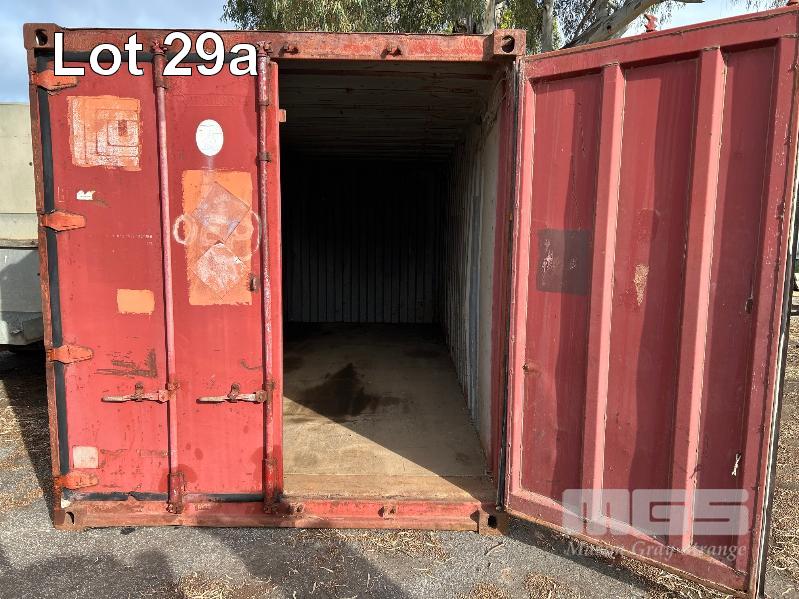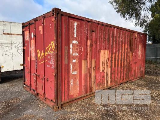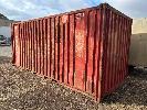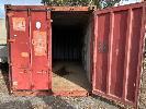 20' SHIPPING CONTAINER RED, FORK POCKETS, TIMBER FLOOR SOME RUST & LEAKS