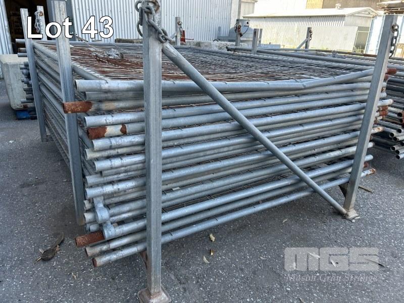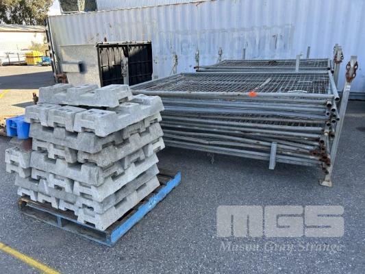 TEMPORARY FENCING, FORTRESS FENCING SYSTEMS COMPRISING 38 x GALV STEEL, WIRE MESH FENCE PANELS, SIZE: 2500 x 2100mm (H) IN 2 x STILLAGES & 1 x PALLET COMPOSITE PLASTIC BASES TO SUIT