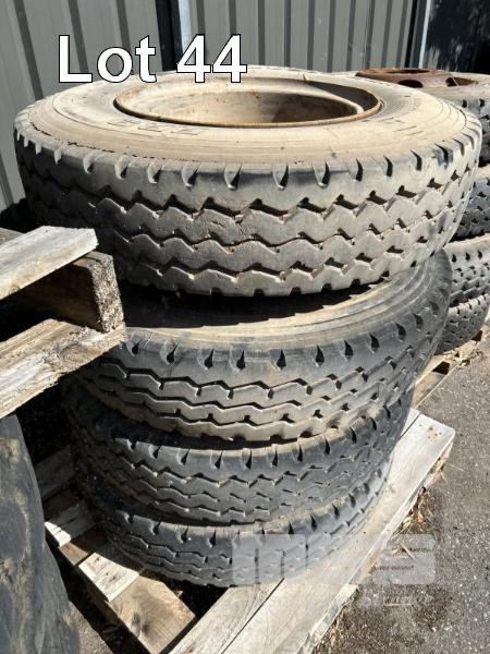 4 x TRUCK RIMS & TYRES, 10 STUD, SM203-10.00 R20 50% TREAD