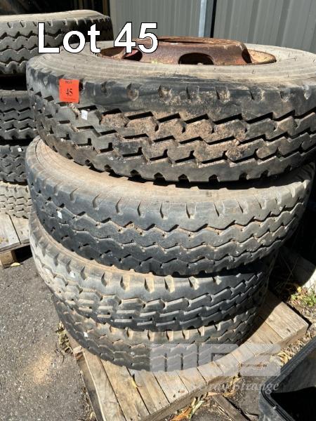 4 x TRUCK RIMS & TYRES, 10 STUD, SM203-10.00 R20 50% TREAD