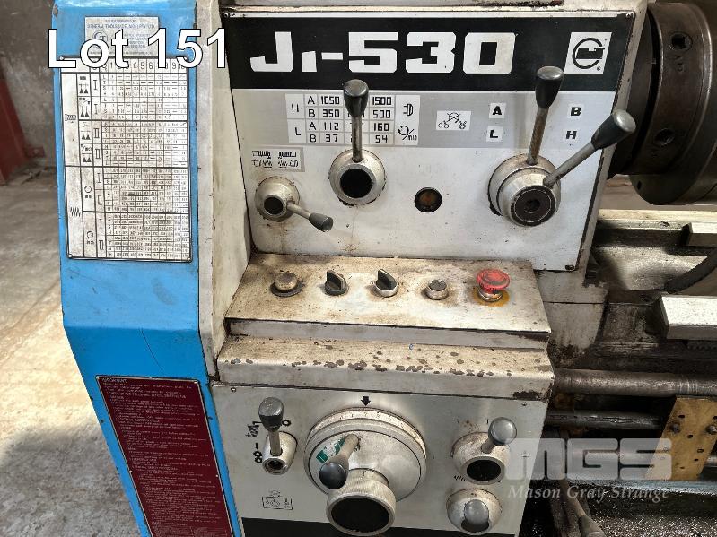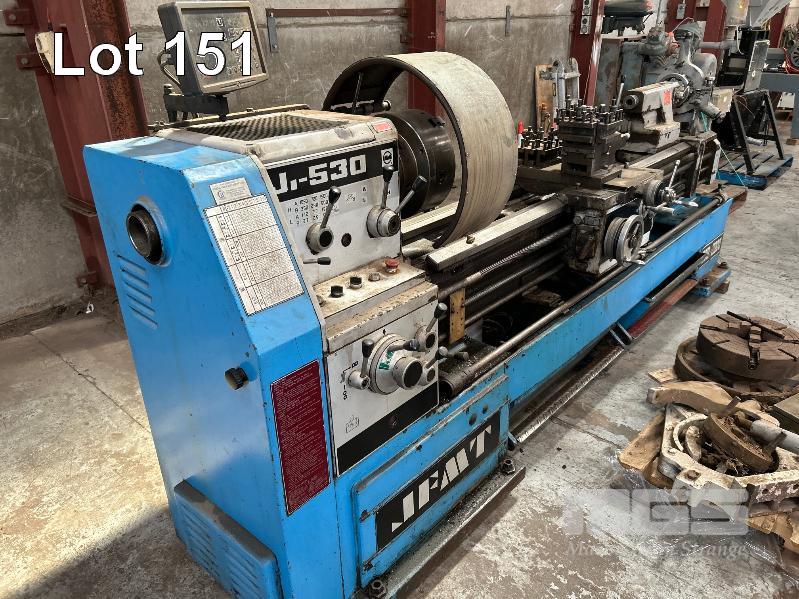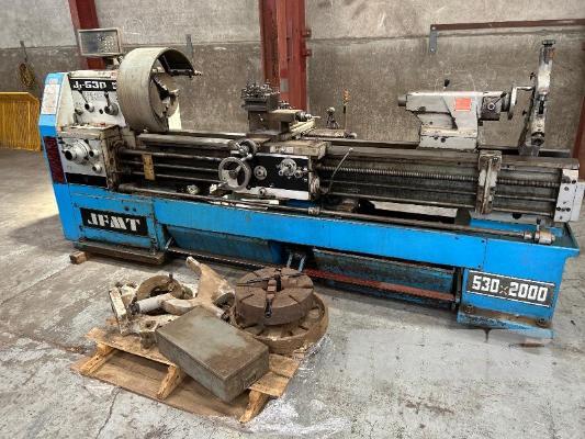 LATHE, JFMT MOD: J-530 X 2000 GAPPED BED LENGTH: 2600mm SWING: 530mm FEED THROUGH: 80mm DIAMETER FITTED WITH SINO DRO, MOD: SDS2L TOOL HOLDERS 3 x 4 JAW CHUCKS, 3 x STEADIES, 2 x SWARF TRAY TOLLIES, FACE PLATE, ETC, 415V WEIGHT: 2870kg