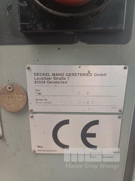 CNC MILLING MACHINE, DECKEL MAHO DMV 70V 3 AXIS CONTROLLER: HEIDENHAIN TNC 426 AUTO TOOL CHANGER, 30 TOOL CAPACITY TABLE DIMENSIONS: 900 x 550mm SPINDLE TYPE: SA40 415V WEIGHT: 8,00kg SOLD IN SITU, LOCATED AT 72 RICHMOND ROAD, KESWICK ( INSPECTION BY APPOINTMENT ONLY, LOADING AT BUYERS COST)