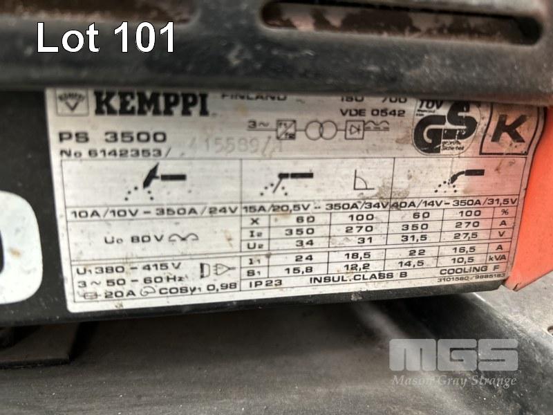 MIG WELDER, KEMPPI MODEL : PS3500 WITH WIRE FEED UNIT MODEL: FU20 415V.