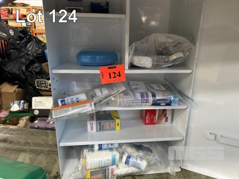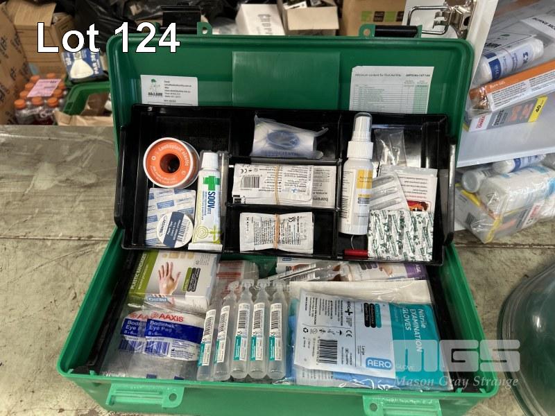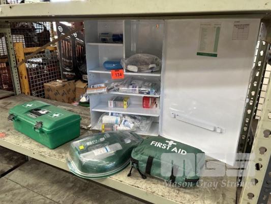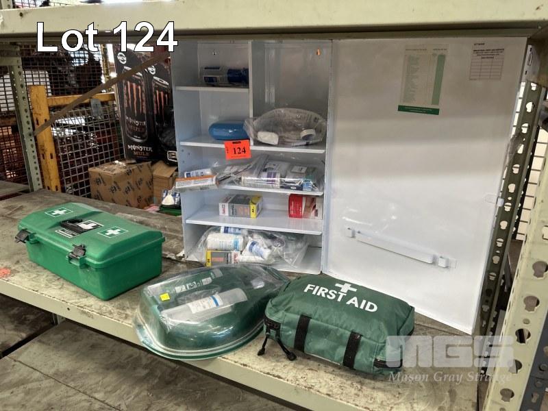 METAL FIRST AID CABINET & CONTENTS, EYE WASH KIT WITH 2 x FIELD KITS