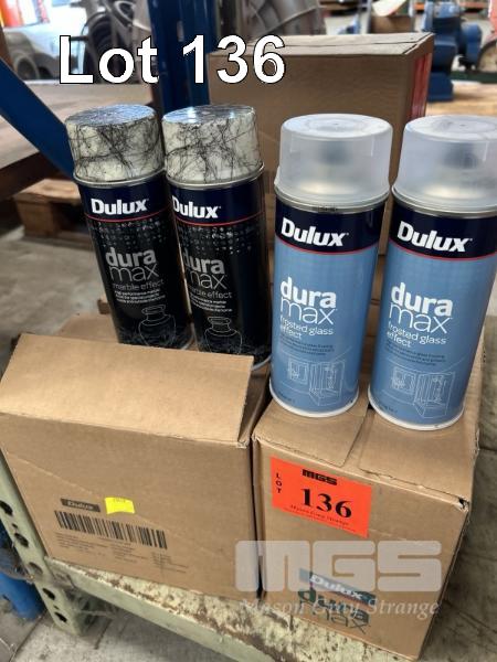 DULUX DURAMAX SPRAY PAINT, GLASS FROSTING & BLACK MARBLE EFFECT 7 x BOXES, (6 x 300gm CANS/BOX)