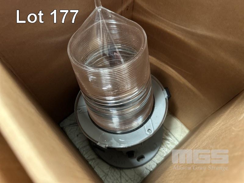 2 x MARINE LANTERNS, TIDELANDS MOD: MAXLUMINA, ML-155 WITH PIERLITE LED LIGHT PANELS, 30-24VDC, STEEL LIGHT SURROUNDS & GUARDS 1 x PALLET