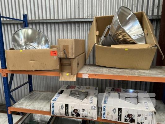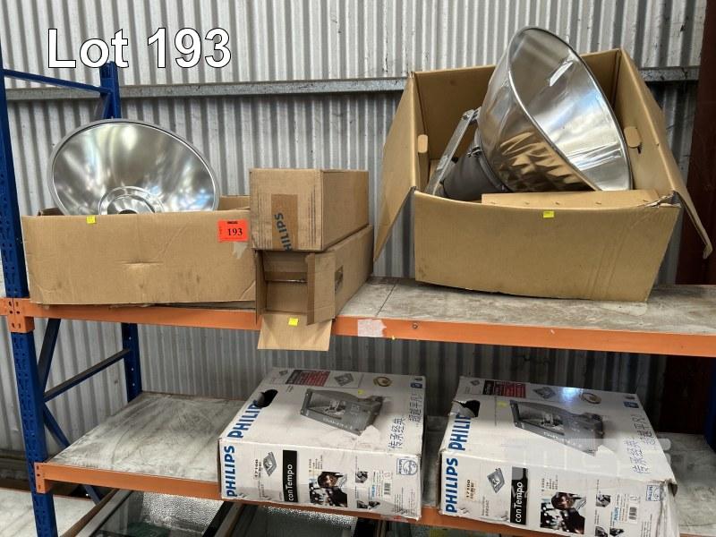 2 x FLOODLIGHTS, PHILIPS, CONTEMPO 250w, 240V & 2 x HIGH BAY FLOOD LIGHTS, EYE LIGHTING, 1000w NEW IN BOXES