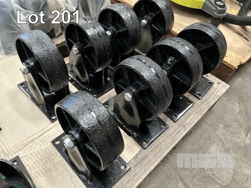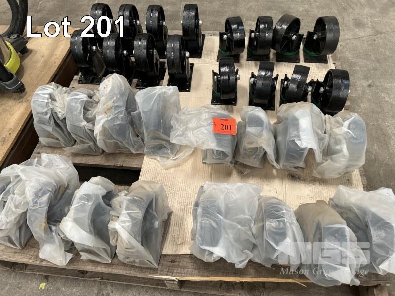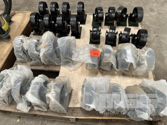 16 x STEEL SWIVEL CASTOR WHEELS, BLACK, 150mm (D), HEAVY DUTY & 16 x FIXED CASTOR WHEELS, BLACK, 150mm (D), HEAVY DUTY