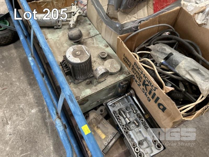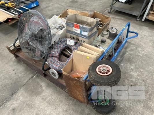 SACK TRUCK, WORKSHOP FAN, TOOLS, CABLES, BRAIDED HOSE, HYDRAULIC TANK, ETC 1 x PALLET