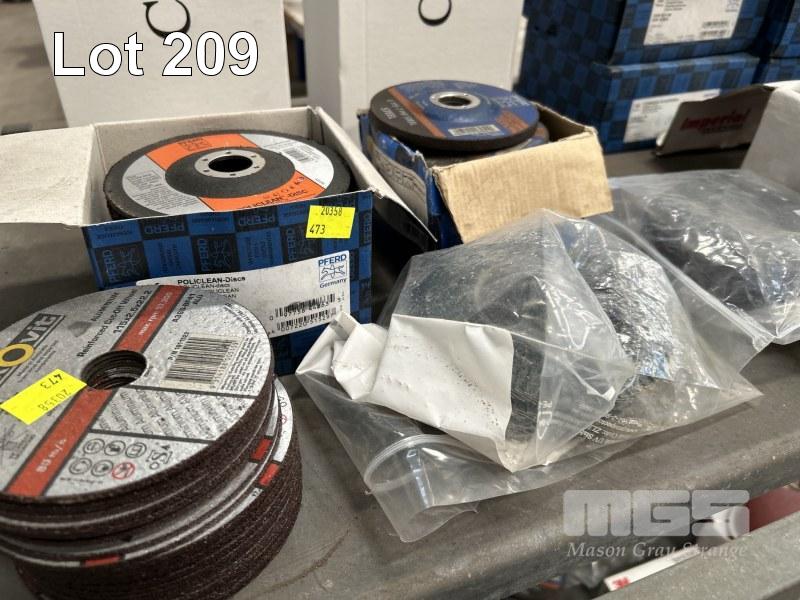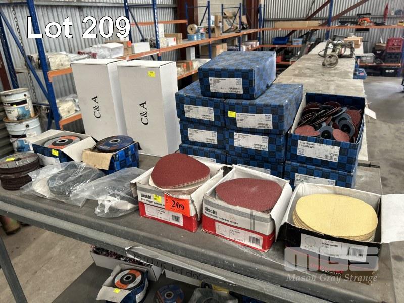 SANDING & GRINDING DISCS, PFERD COMBIDISC CDR 50 A60 9 x BOXES (100/BOX), DISCHI 150mm SANDING DISCS, 3 X BOXES, FLEXOVIT & PFERD ANGLE GRINDER DISCS & FLAP DISCS, 115mm WITH SAFETY GLASSES, C&A TINTED, 2 x BOXES, (12/BOX) 1 x SHELF