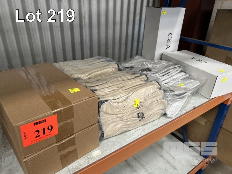 2 x BOXES C&A TINTED SAFETY GLASSES, (12/BOX), RIGGA MATE LEATHER GLOVES, XL, 2 x PACKS, (12/PACK), 20 x PAIRS RIGGERS GLOVES, MEDIUM & 2 x BOXES GLOVE CLIPS