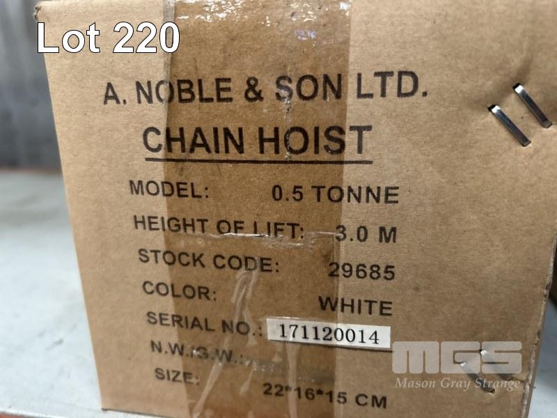 2 x CHAIN HOIST, NOBLE & SONS 1/2 TONNE X 3mtrs