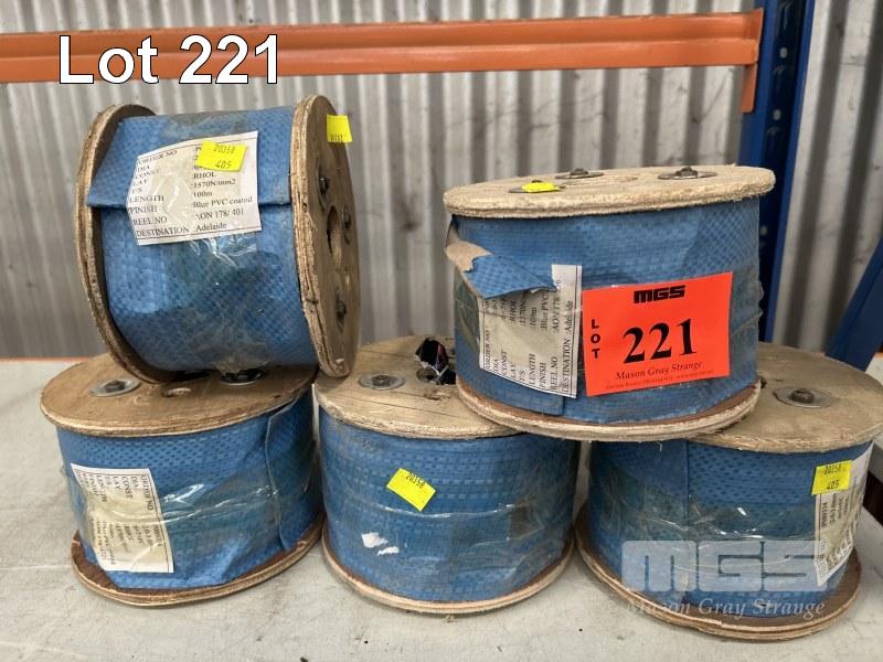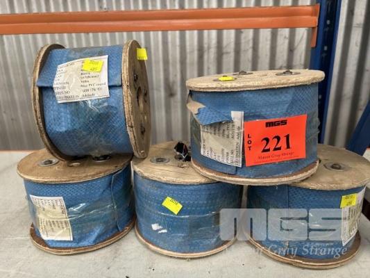 5 x ROLLS PVC WIRE CABLE. BLUE COATED 2-3mm x 100m