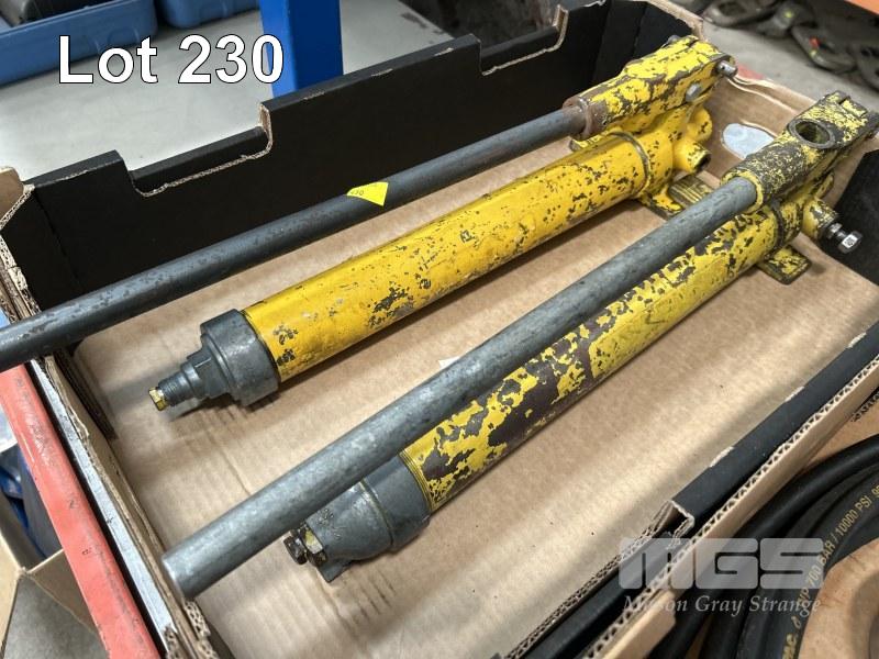 2 x HYDRAULIC POWER PACKS, MANUAL WITH GAUGES & HOSES