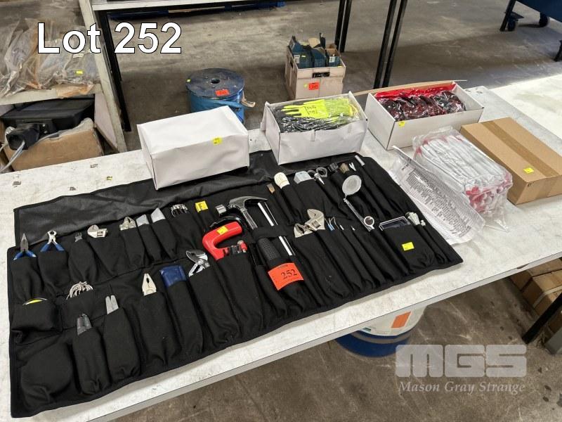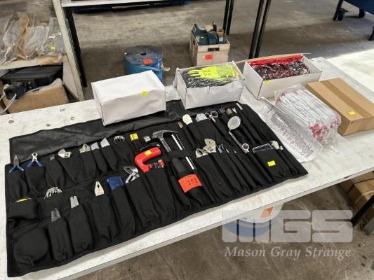 TOOL KIT, ALLEN VANGUARD SKT EOD OPERATIONS TOOL KIT, EX MILITARY SURPLUS WITH SAFETY GLASSES, 1 x BOX OF 12, 12 x PAIRS FRONTIER SUEDE GLOVES, SMALL & 20 x HI VIS FORM FIT SAFETY GLOVES, ETC