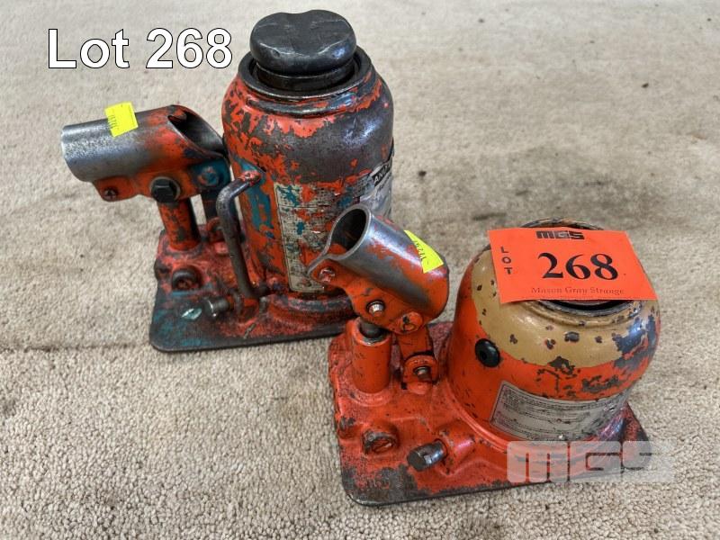 2 x HYDRAULIC BOTTLE JACKS, MASADA INC. HFD 10F3 , 2 STAGE, 10 TON & SINGLE STAGE 20T