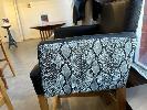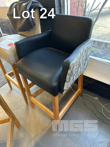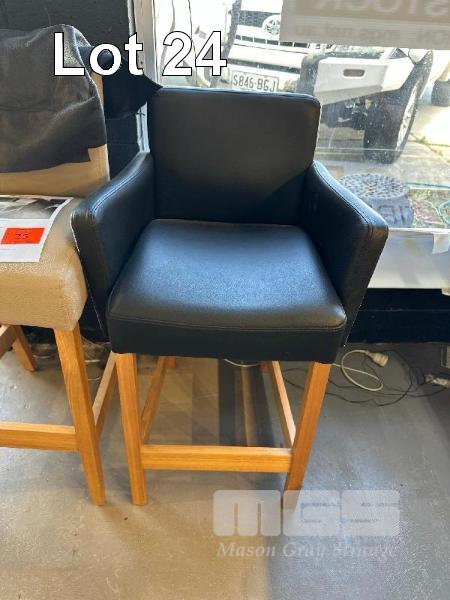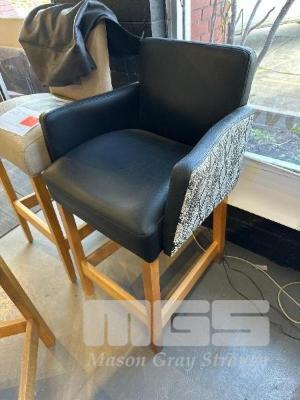 BENCH CHAIR WITH ARMS, VINYL, OAK FRAME, 710mm (H)