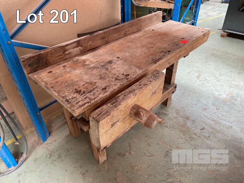 OLD SCHOOL TIMBER BENCH, 1480 x 600mm WITH TIMBER VICE