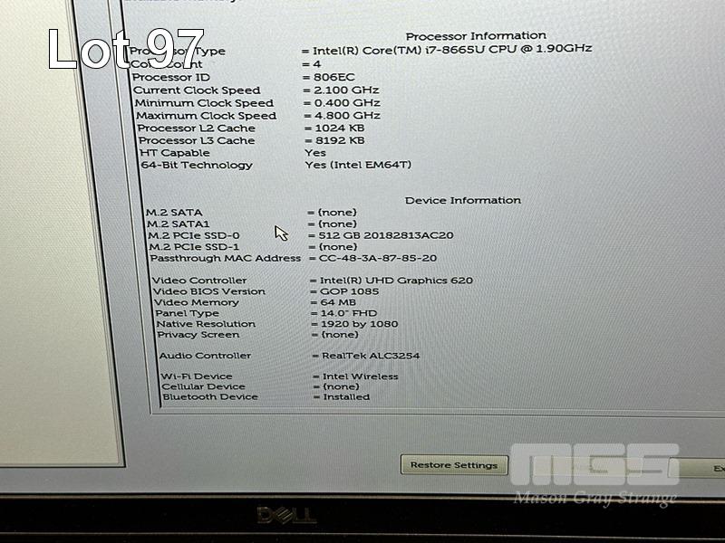 LAPTOP, DELL LATITUDE 7400, CORE i7 8665U (8TH GEN) @ 1.9GHz, 8GB DDR4 RAM, 512GB NVMe M.2 SSD, 14" WIDESCREEN (1920x1080), INTEL UHD GRAPHICS 620, Wi-Fi, BLUETOOTH, WINDOWS 11 PRO INSTALLED & POWER SUPPLY S/N:738NZ53