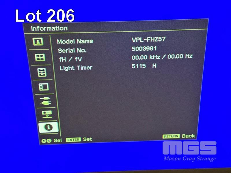 LASER PROJECTOR, SONY VPL-FHZ57 WUXGA 3LCD, 4,100 LUMENS, 5,115 HOURS SHOWING WITH REMOTE (NOTE: FAINT LINES ON PROJECTION) S/N:5003981