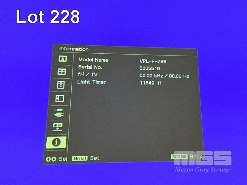 LASER PROJECTOR, SONY VPL-FHZ55 WUXGA 3LCD, 4,000 LUMENS, 11,549 HOURS SHOWING (NO REMOTE) S/N:5005519