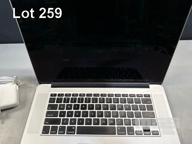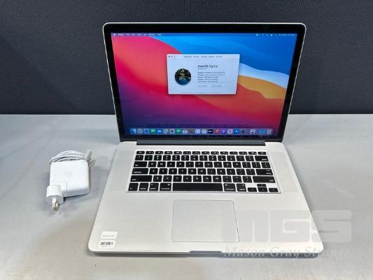 LAPTOP, APPLE MACBOOK PRO (A1398), CORE i7 4870HQ (4TH GEN) @ 2GHz, 8GB DDR3 RAM, 256GB SSD, 15.4" RETINA DISPLAY (2880x1800), INTEL IRIS PRO GRAPHICS, Wi-Fi, BLUETOOTH, MAC OS 11.7 INSTALLED & POWER SUPPLY (NOTE: MARKS ON SCREEN, MINOR DENT TO CASING) S/N:C02LGGV2FD56