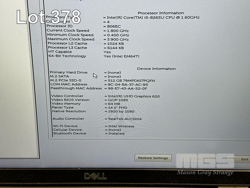 LAPTOP, DELL LATITUDE 5400, CORE i5 8265U (8TH GEN) @ 1.6GHz, 8GB DDR4 RAM, 512GB NVMe M.2 SSD, 14" WIDESCREEN (1920x1080), INTEL UHD GRAPHICS 620, Wi-Fi, BLUETOOTH, WINDOWS 11 HOME INSTALLED & POWER SUPPLY (NOTE: MARKS ON SCREEN) S/N:JK7N0Z2