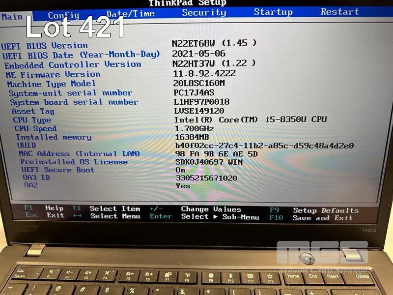 LAPTOP, LENOVO THINKPAD T480s, TYPE 20L8, CORE i5 8350U (8TH GEN) @ 1.7GHz, 16GB DDR4 RAM, 256GB NVMe M.2 SSD, 14" TOUCHSCREEN (1920x1080), INTEL HD VIDEO, Wi-Fi, BLUETOOTH, WINDOWS 11 PRO INSTALLED (NO USB-C POWER SUPPLY) (NOTE: MARKS ON SCREEN) S/N:PC17J4AS