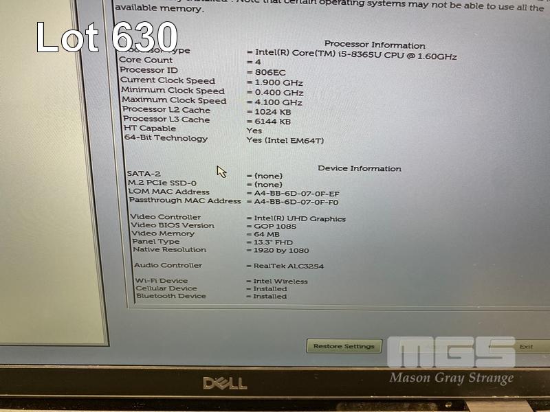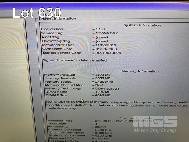 LAPTOP, DELL LATITUDE 5300, CORE i5 8365U (8TH GEN) @ 1.6GHz, 8GB DDR4 RAM, NO HDD, 13.3" WIDESCREEN (1920x1080) & POWER SUPPLY (NOTE: SWOLLEN BATTERY, MARKS ON SCREEN) S/N:CD6WGW2