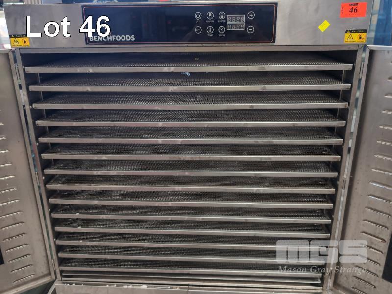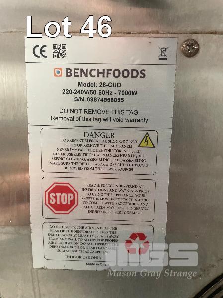COMMERCIAL DEHYDRATOR, BENCHFOODS MOD: 28-CUD 4 DOOR, 28 SHEVES, DRO 240V 32AMP PLUG
