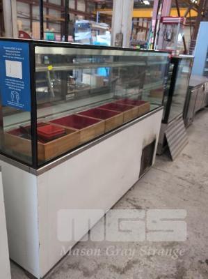 LARGE DISPLAY FRIDGE, HEATCRAFT MOD: KCT1600 4 DOOR LOWER STORAGE GLASS SLIDING DOOR ACCESS LED LIGHTING 2400 x 820 x 1400mm (H) 240V (HARD WIRED)