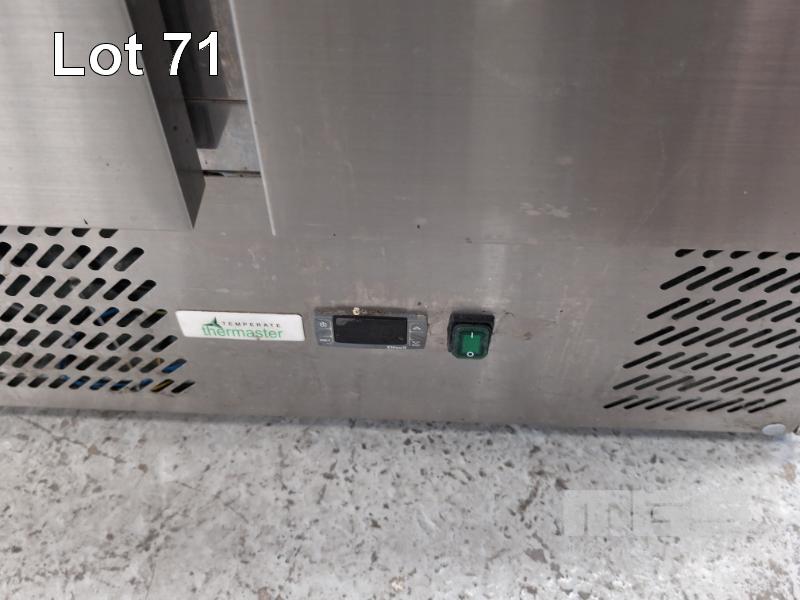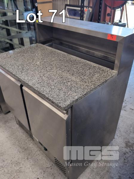 1 X THERMASTER 2-DOOR MARBLE TOP STAINLESS STEEL PIZZA PREP REFRIGERATOR. MODEL XGNS900E. 900 X 700 X 1,110 MM (W D H). 240V.