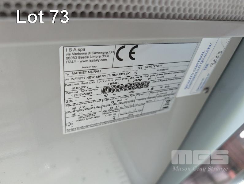 1 X ISA INFINITY NEW SMARTFLEX GLASS CURTAIN FRIDGE. AUTOMATIC GLASS DOORS. 5-SHELF. MODEL 130 RV TN. 1,230 X 870 X 2,130 MM (W D H). 240V.