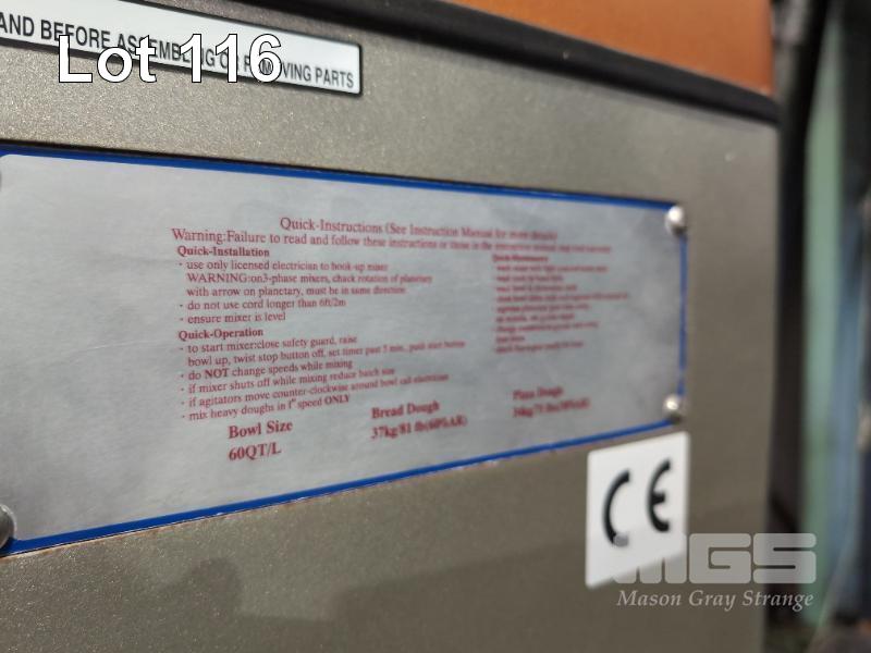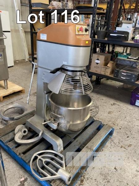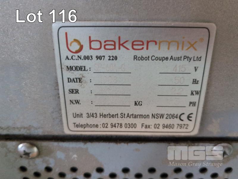 1 X PLANETARY MIXER, ROBOT COUPE, BAKERMIX MOD: SP-60A-G 60 LITRE, 415V W/ HOOK, WHISK & PADDLE ATTACHMENTS & BOWL TROLLEY.
