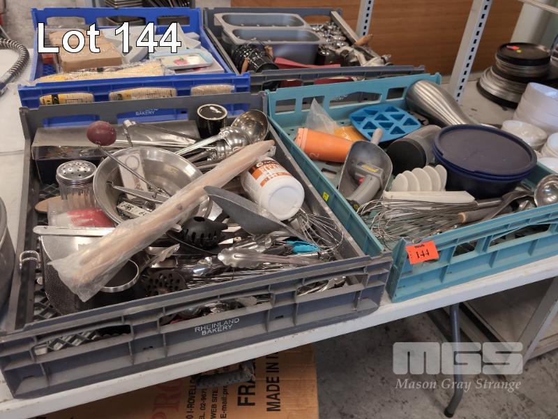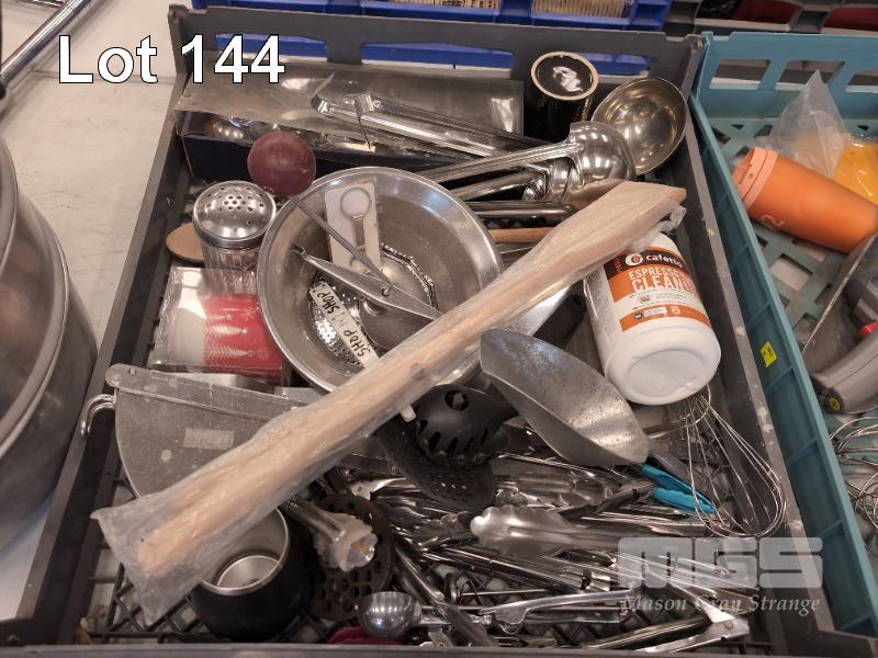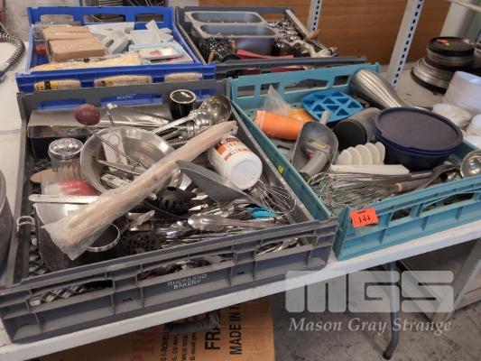 ASSORTED UTENSILS ETC. CONTENTS 2 X BREAD TRAYS.