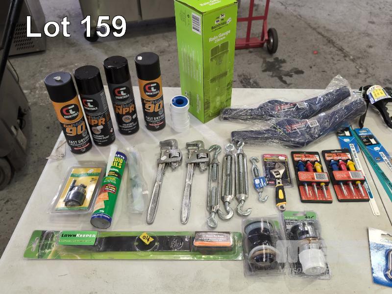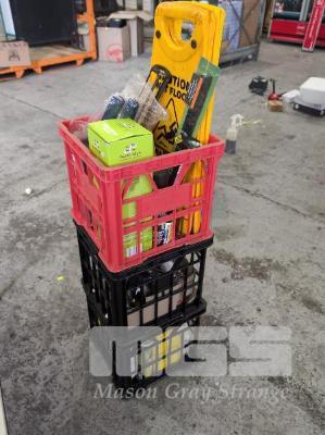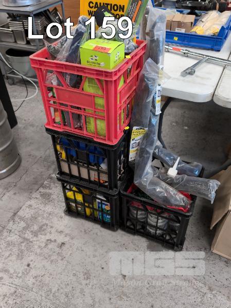 ASSORTED NEW HARDWARE & GARDEN ITEMS. CONTENTS 4 X MILK CRATES.