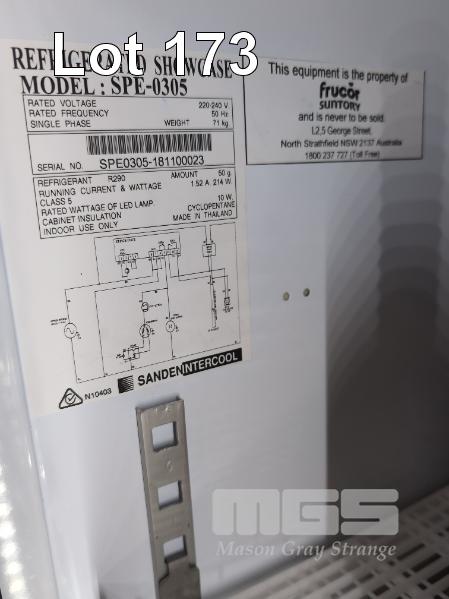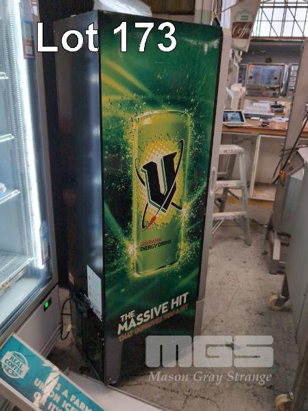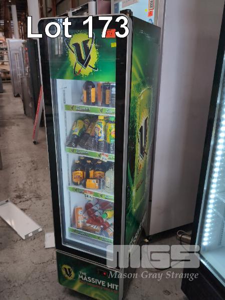 1 X V ENERGY DRINK BRANDED SINGLE DOOR DISPLAY FRIDGE. ILLUMINATED. MODEL SPE-0305. 450 X 610 X 1,720 MM (W D H). 240V.
