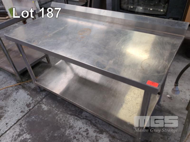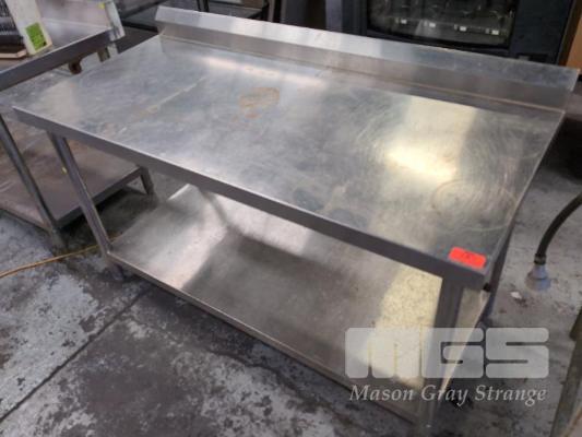 1 X BUTCHER'S STAINLESS STEEL PROCESS/ CHOPPING BENCH WITH SPLASHBACK AND UNDER SHELF. 1,500 X 710 X 850 MM (W D H).