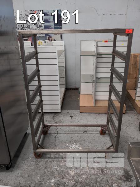 1 X 6-TIER STAINLESS STEEL MOBILE HANGING TROLLEY. 1,070 X 610 X 1,570 MM (W D H).