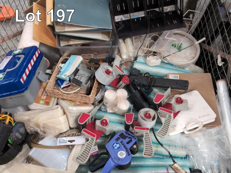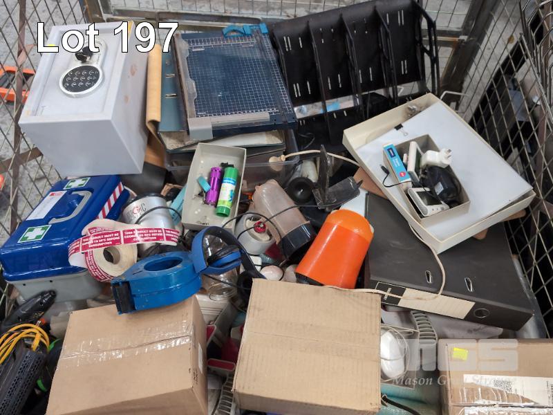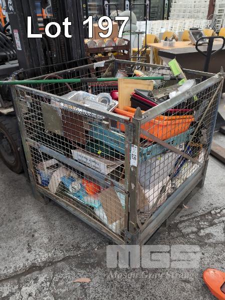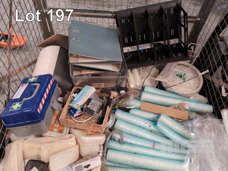 OFFICE SUNDRIES, ELECTRICAL, LUNCHROOM, GARDEN HOSE & FITTINGS, PPE, LAPTOP, PRINTER ETC. CONTENTS 1 X CAGE. CAGE NOT INCLUDED