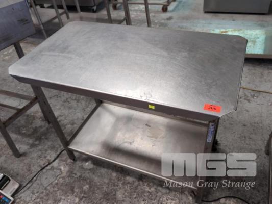 1 X BUTCHER'S STAINLESS STEEL PROCESS/ CHOPPING BENCH WITH UNDER SHELF & TRIMMED CORNERS. 1,115 X 625 X 880 MM (W D H).