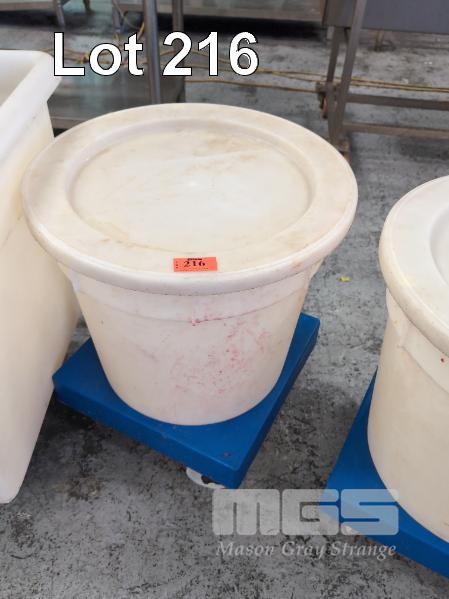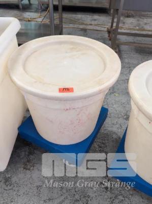 1 X 115 LITRE (EST.) ROUND FOOD GRADE PLASTIC TUB. WITH LID. 540 X 500 MM (OVERALL D H).