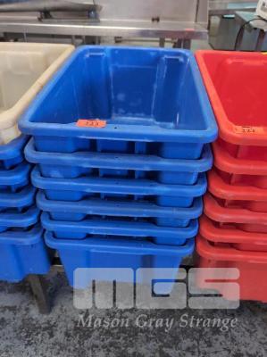 6 X 52 LITRE REUSABLE STACK & NEST FOOD CRATES. BLUE.