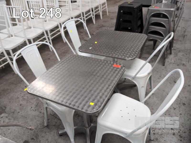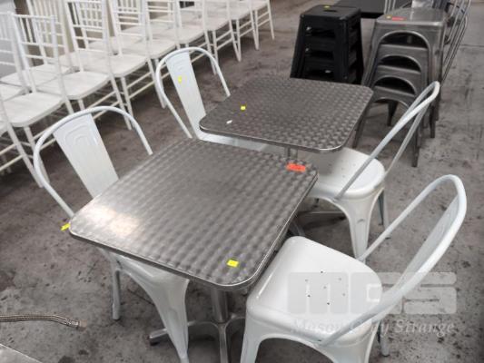 2 X CAFE TABLES. BRUSHED STEEL TOPS.