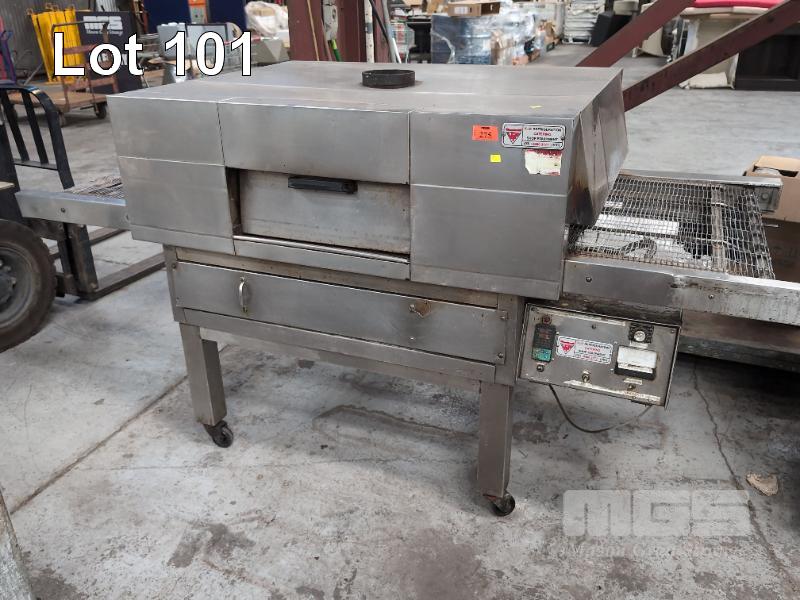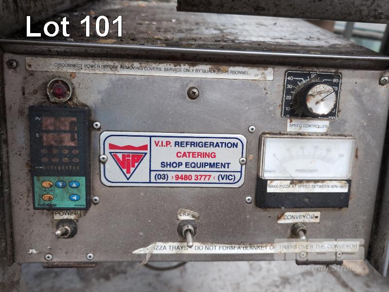 CONVEYOR PIZZA OVEN, VIP CATERING 815mm (W) CONVEYOR ON CASTORS, NATURAL GAS, 240V OVERALL 2400 (W) x 975 (D) x 1250mm (H)
