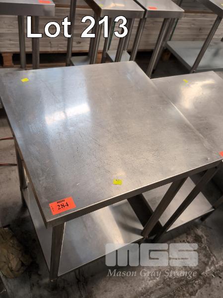 1 X STAINLESS STEEL COMMERCIAL KITCHEN PREP TABLE WITH UNDERSHELF. 610 X 610 X 915 MM (W D H)