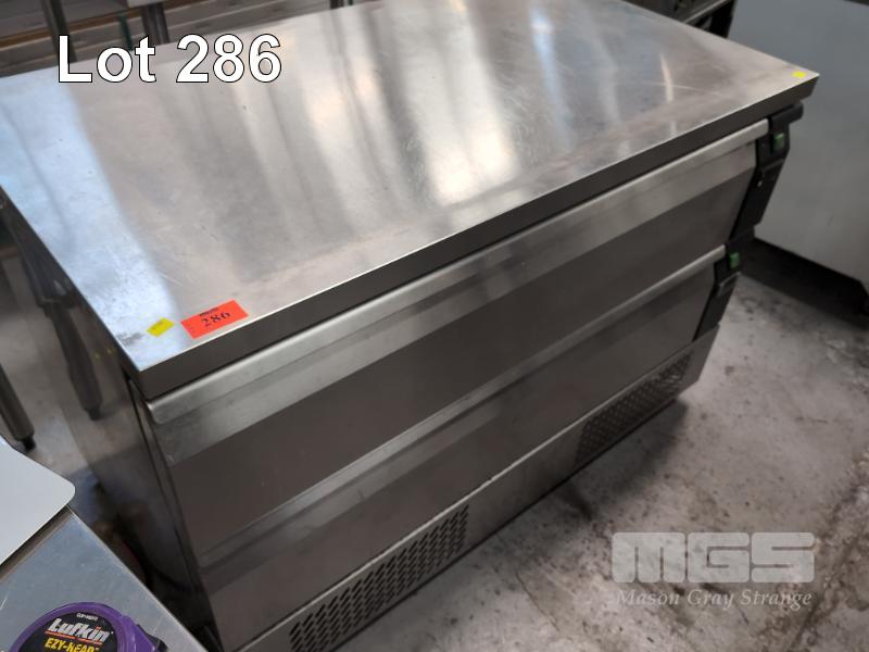 1 X FED STAINLESS STEEL 2-FLEXDRAWER UNDERCOUNTER FRIDGE/FREEZER. MODEL CBR2-3. 1,230 X 700 X 830 MM (W D H). ** ALL FAULTS **